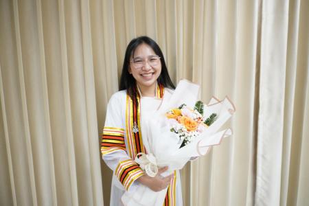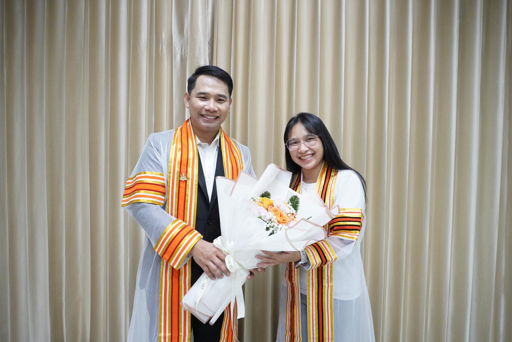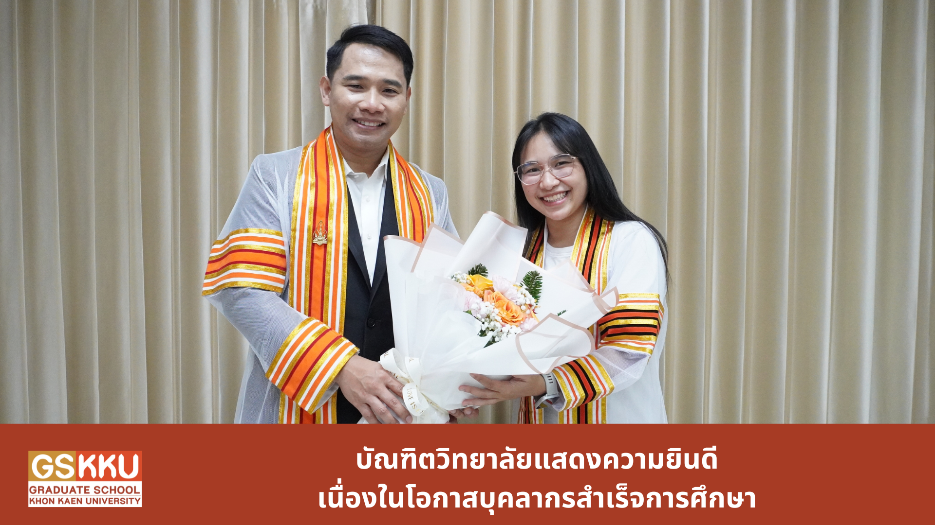ผู้บริหาร และบุคลากรบัณฑิตวิทยาลัย แสดงความยินดี เนื่องในโอกาสบุคลากรสำเร็จการศึกษา วันที่ 19 ธันวาคม พ.ศ.2568 ศ.ดร.เกียรติไชย ฟักศรี คณบดีบัณฑิตวิทยาลัย มอบช่อดอกไม้แสดงความยินดี แก่ นางสาวณัฐกานต์ พรรณขาม ลูกจ้างเหมาบริการ เนื่องในโอกาสสำเร็จการศึกษา หลักสูตรวิทยาศาสตรมหาบัณฑิต สาขาวิชาพืชสวน คณะเกษตรศาสตร์ มหาวิทยาลัยขอนแก่น