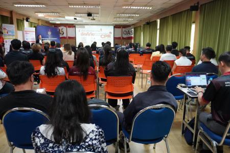 บุคลากรบัณฑิตวิทยาลัยและหน่วยงานต่างๆในอาคารพิมล กลกิจ เข้าร่วมอบรมทักษะเบื้องต้นด้านการป้องกันและระงับอัคคีภัย และการช่วยชีวิตขั้นพื้นฐานด้วยเทคนิค CPR เมื่อวันที่ 1 เมษายน พ.ศ. 2569 ณ ห้องประชุมดุสิตา สำนักบริการวิชาการ การอบรมครั้งนี้มุ่งเน้นการเสริมสร้างทักษะความปลอดภัยในสถานที่ทำงาน โดยครอบคลุมเนื้อหาการป้องกันอัคคีภัย การใช้อุปกรณ์ดับเพลิง การอพยพในสถานการณ์ฉุกเฉิน รวมถึงการฝึกปฏิบัติเทคนิค CPR และการช่วยเหลือผู้ป่วยฉุกเฉิน ซึ่งเป็นทักษะจำเป็นที่ทุกคนควรมีเพื่อสามารถช่วยเหลือตนเองและผู้อื่นได้ในยามจำเป็น