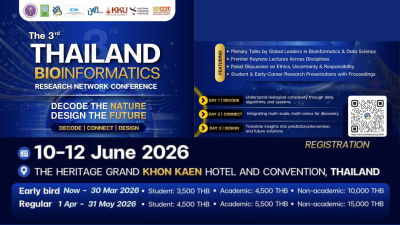 ขอเชิญนักวิจัย นักวิชาการ นักศึกษา และผู้สนใจด้าน Bioinformatics, ML และ Data Scienceร่วมเป็นส่วนหนึ่งของThe 3rd Thailand Bioinformatics Research Network Conference 2026