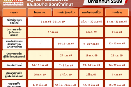 ผู้สนใจดูรายละเอียดและสมัครได้ที่ https://admission.gs.kku.ac.th/dashboard
