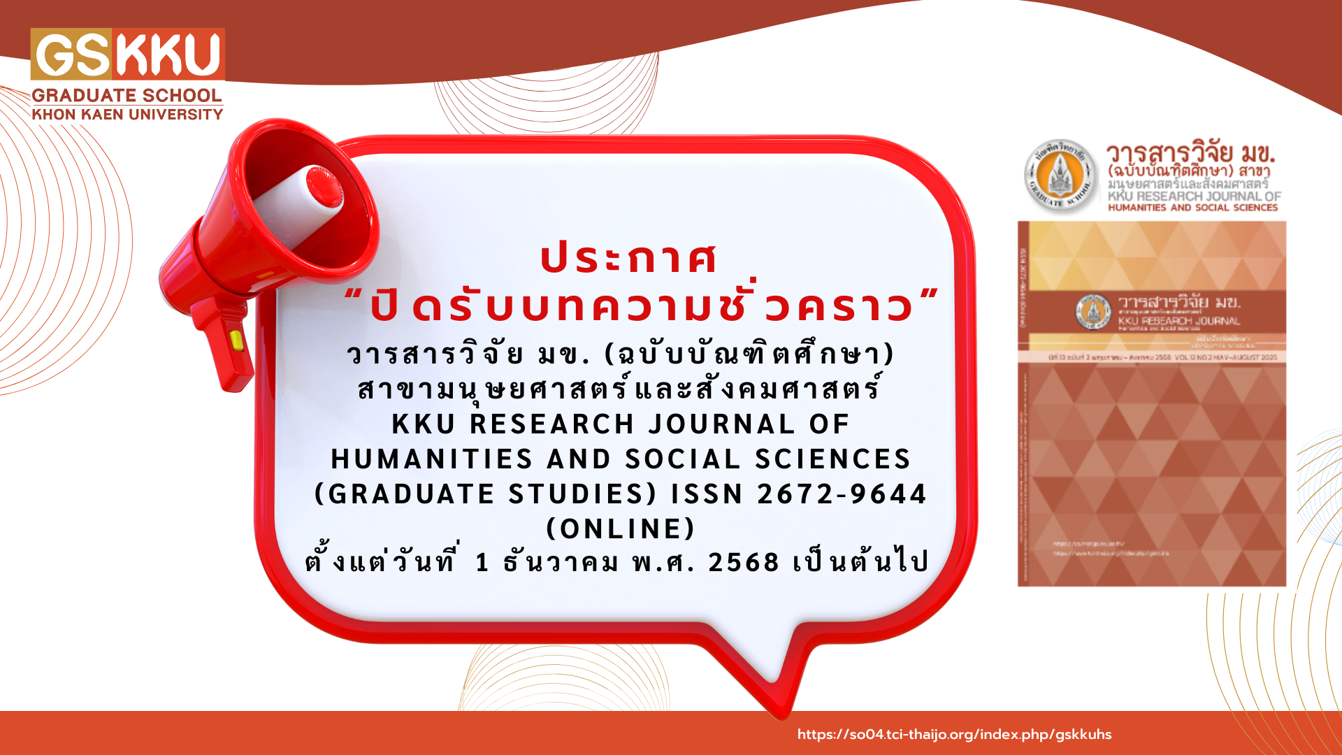 วารสารวิจัย มข. (ฉบับบัณฑิตศึกษา) สาขามนุษยศาสตร์และสังคมศาสตร์ KKU Research Journal of Humanities and Social Sciences (Graduate Studies) ISSN 2672-9644 (Online) ขอแจ้งการปิดรับบทความเพื่อการตีพิมพ์ในวารสารฯ ตั้งแต่วันที่ 1 ธันวาคม พ.ศ. 2568 เป็นต้นไป